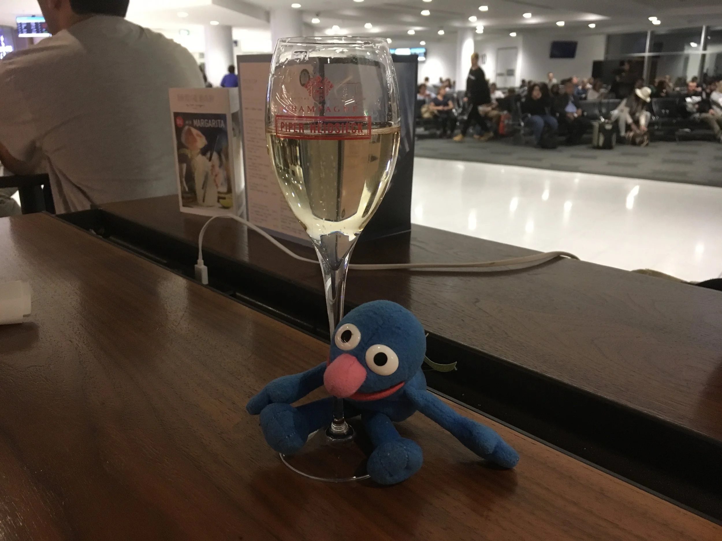 We started with our traditional glass or two of bubbles and then hung around until it finally time to check-in at Hawaiian Airlines......only to find a very long snaking queue. By the time we got through it was almost time to board.